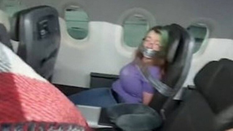 Uma mulher, aparentemente desequilibrada, precisou ser amarrada com fita adesiva em uma das poltronas da aeronave, durante o voo 1774 da American Airlines, nos Estados Unidos. O episódio ocorreu no último dia 6 de julho, mas viralizou nas redes sociais neste domingo (11), após uma das passageiras compartilhar o registro no TikTok.